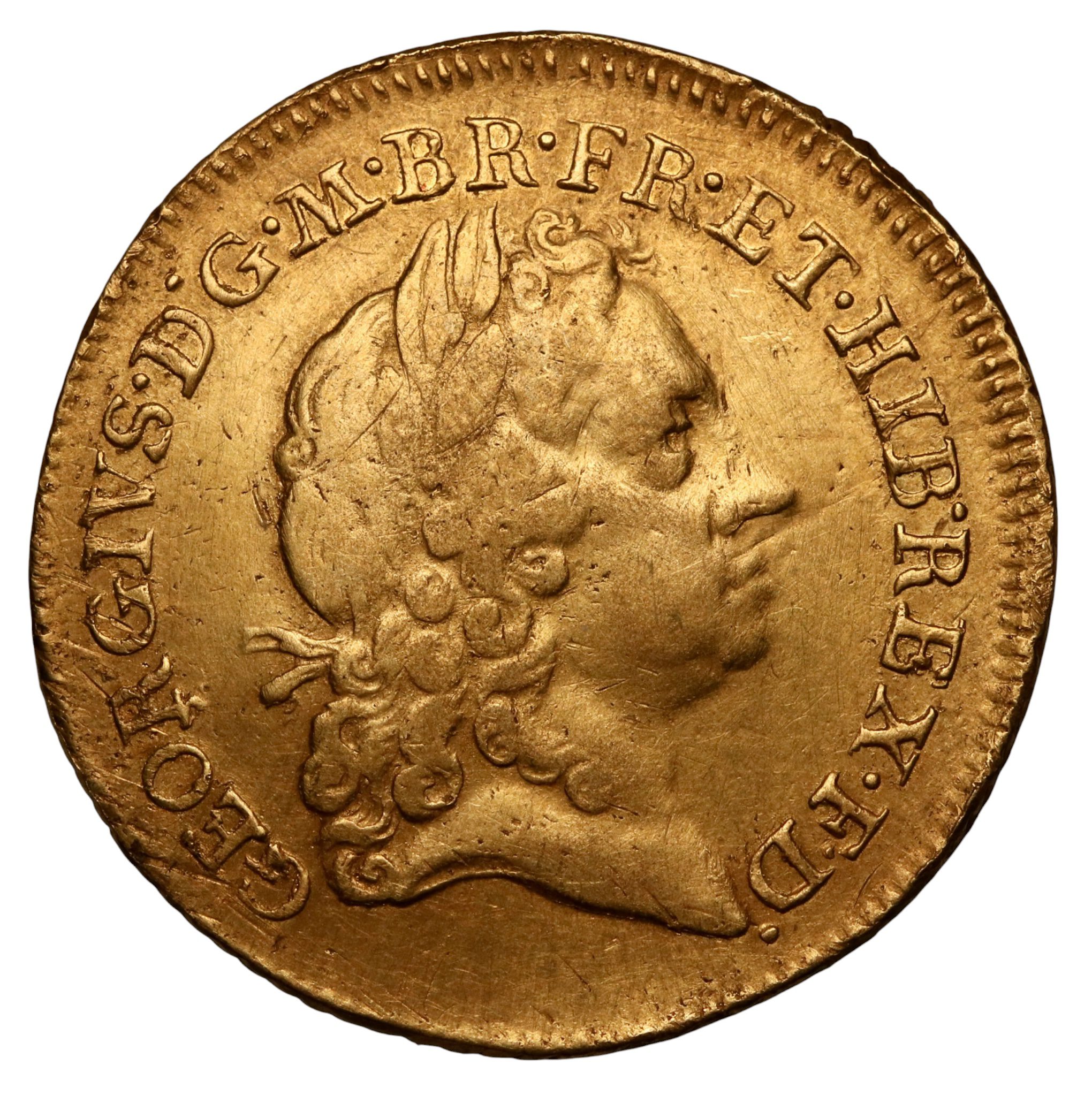 Obverse features George I third laureate head and is inscribed GEORGIVS DG M BR FR ET HIB REX FD